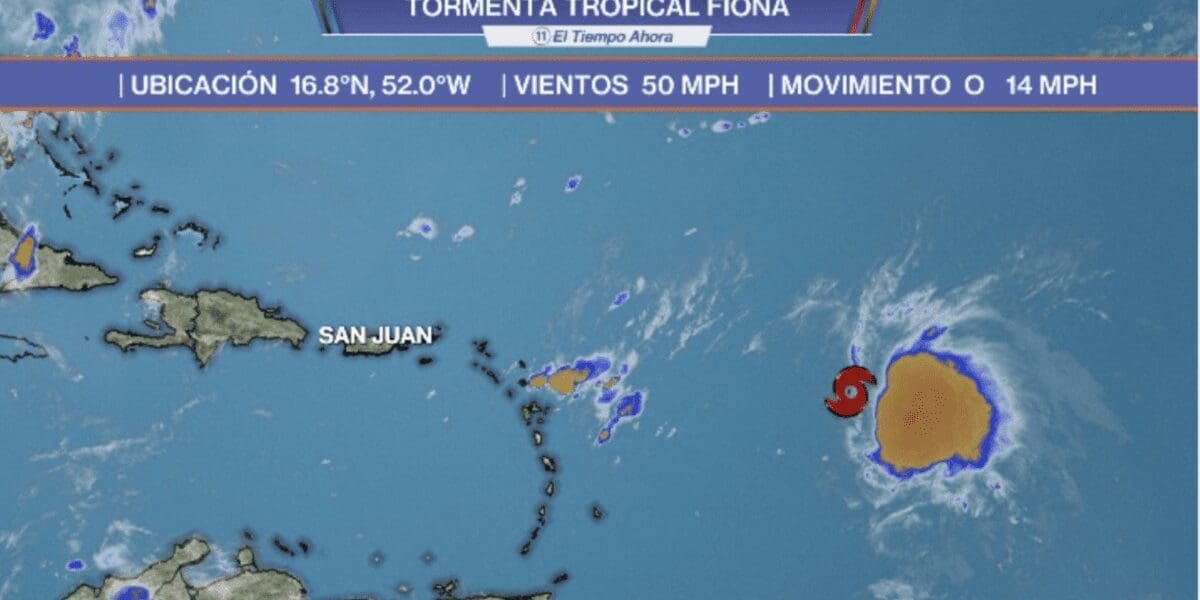 Fiona registra vientos máximos de 50 mph. Según la trayectoria actual, estaría trayendo fuertes aguaceros a partir del viernes.