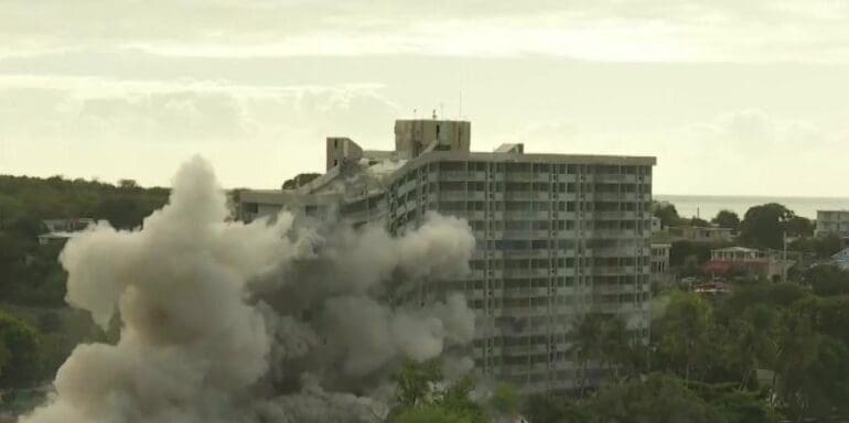 Así fue la implosión del Centro Vacacional de AEELA en Guánica